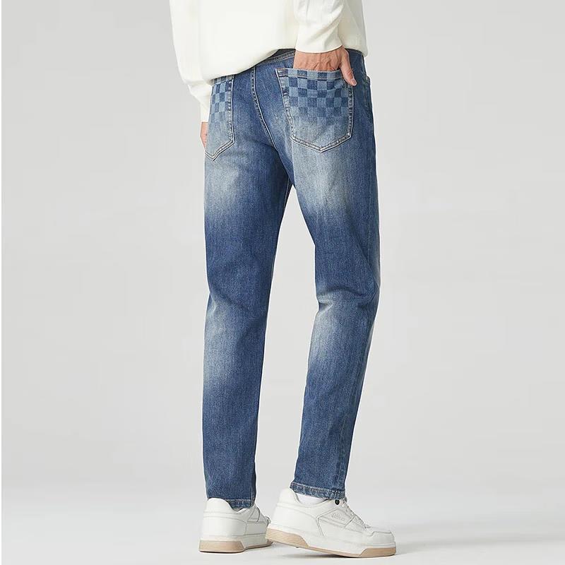 Cabbeen Men's Fall 2024 Slim Fit Chessboard Tapered Stretch Jeans