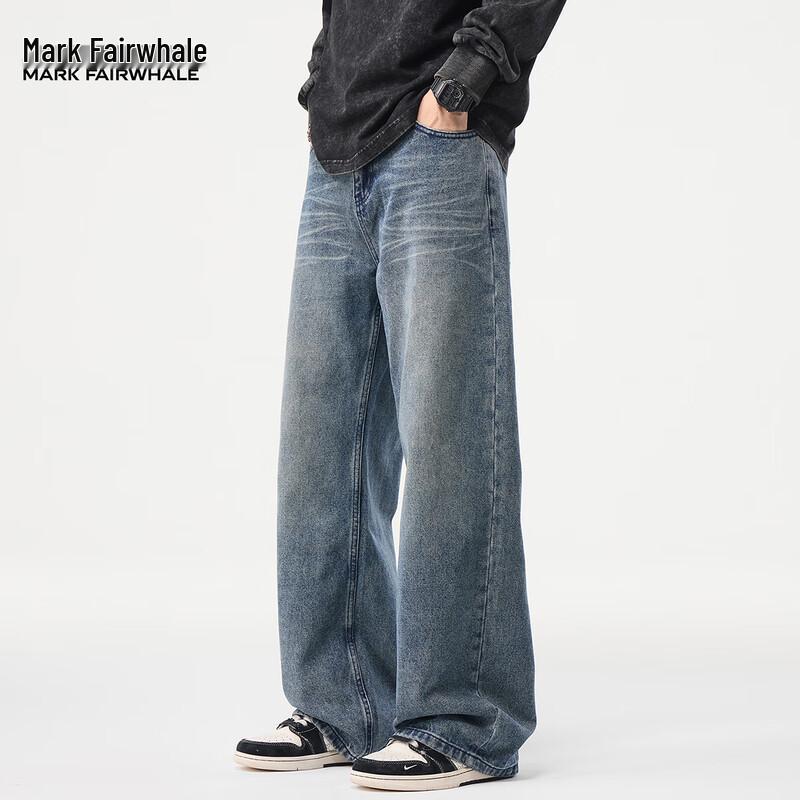 Мужские выстиранные джинсы из денима свободного кроя с прямыми штанинами Mark Hua Fei