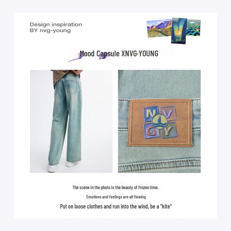 NVG·YOUNG Мужские широкие прямые джинсы из денима свободного кроя