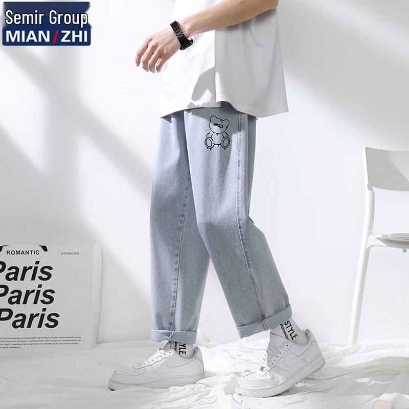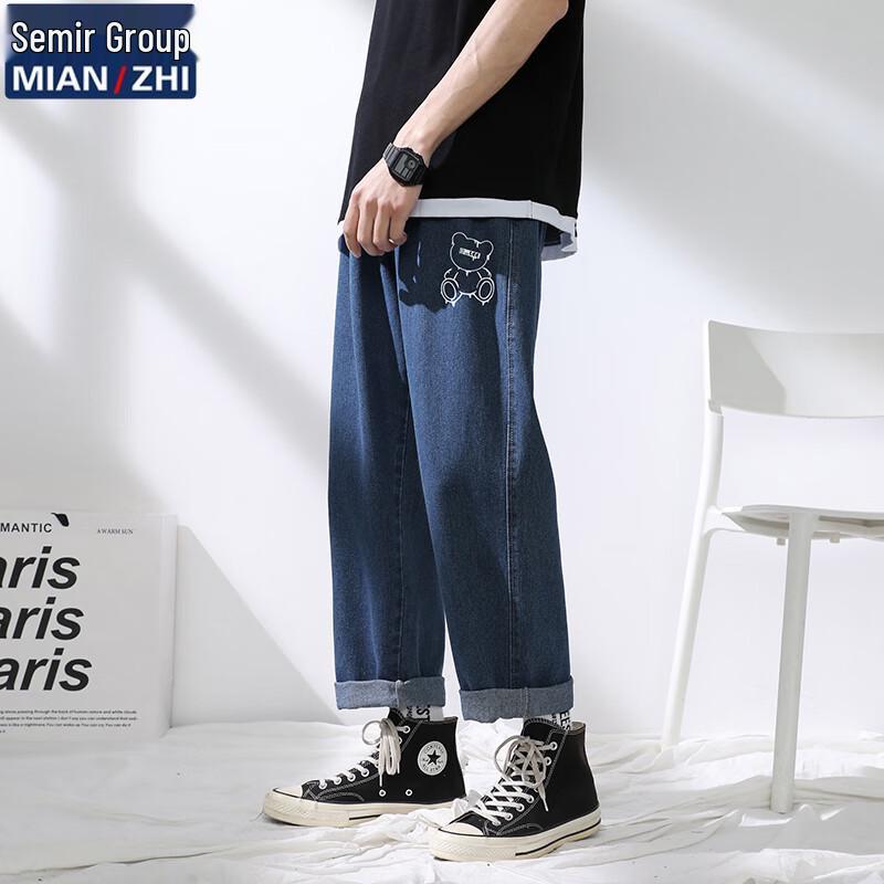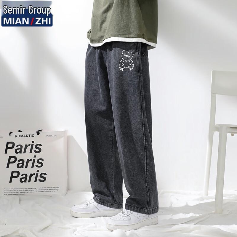 Мужские джинсы свободного прямого кроя из смесового хлопка