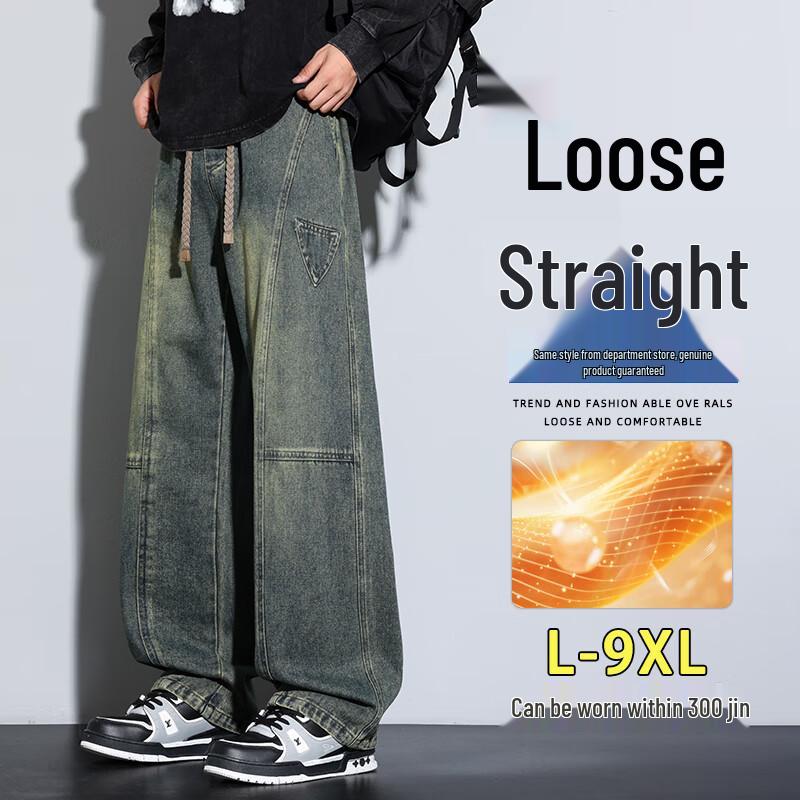 Мужские джинсы деним больших размеров свободного прямого кроя