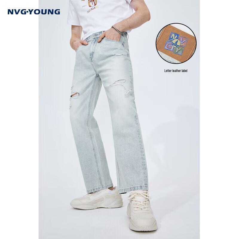 NVG Мужские рваные прямые укороченные джинсы из денима