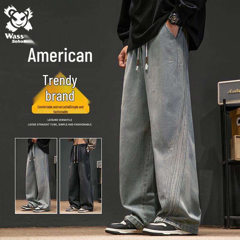 Вассап Джинсы мужские винтажные выстиранные свободные прямые