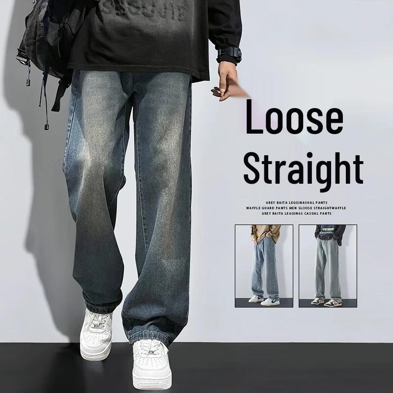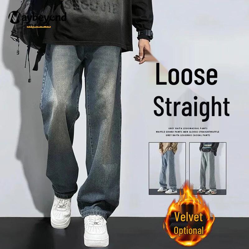 MAYBEYOND Мужские джинсы свободного кроя с прямыми штанинами