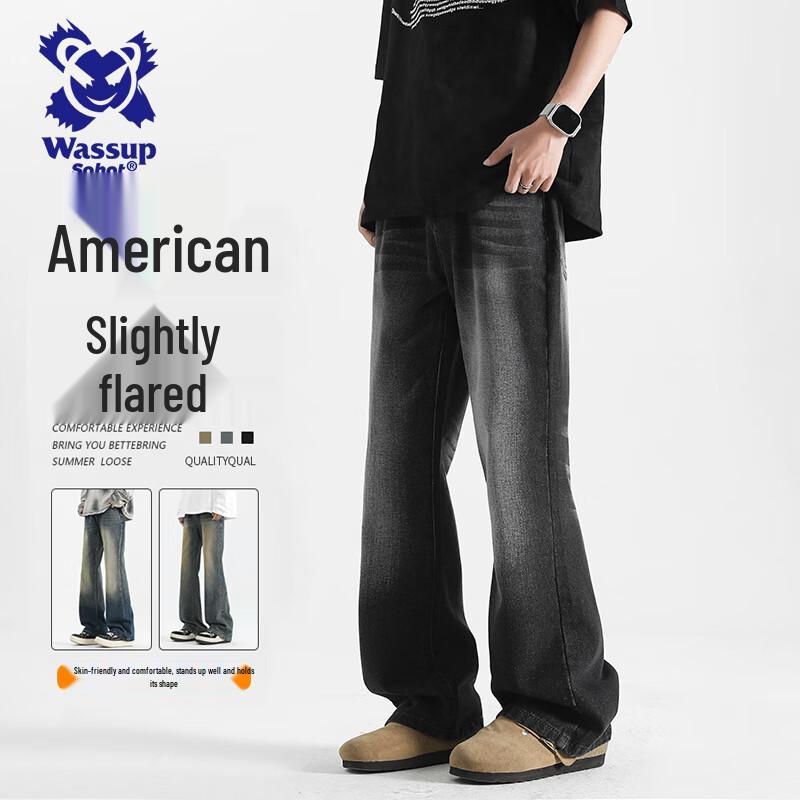 Wassup Sohot Мужские джинсы из денима зауженного прямого кроя клеш