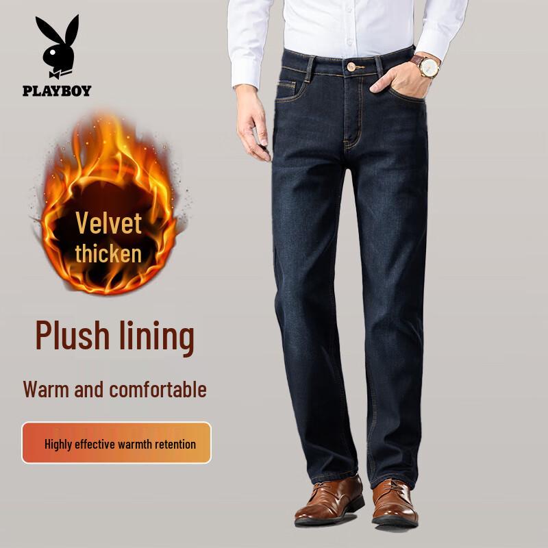 PLAYBOY Мужские деловые джинсы прямого кроя на флисовой подкладке 2025