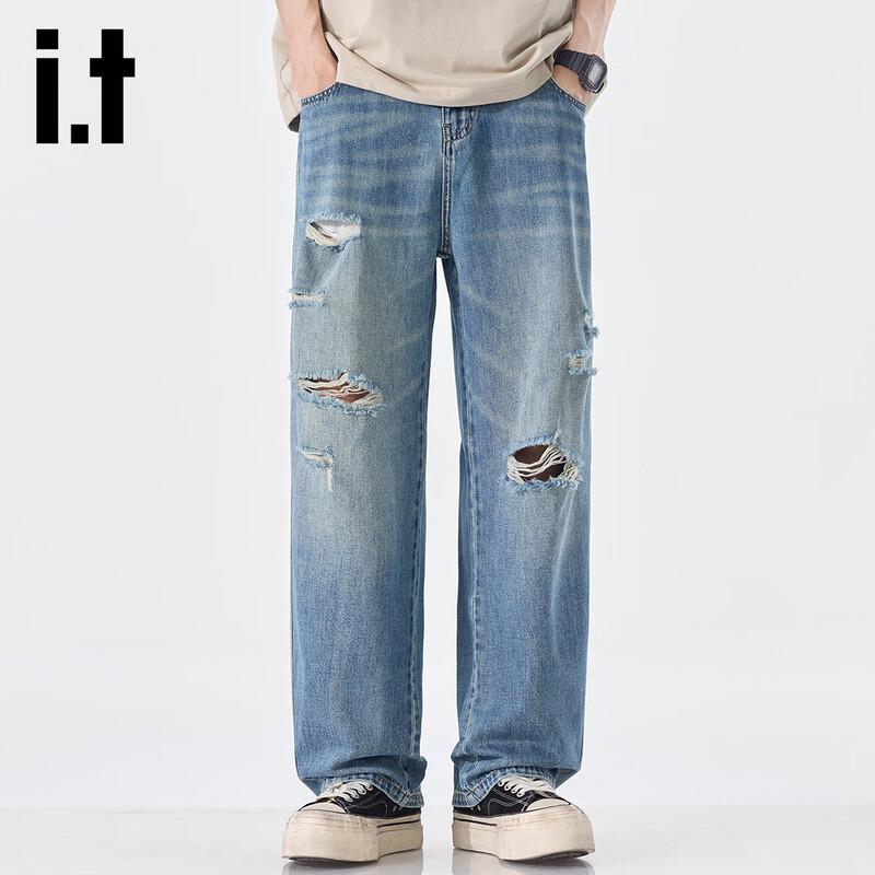 Izzue It Мужские джинсы прямого кроя свободного силуэта с эффектом потертости и рваными деталями — купить товар онлайн с бесплатной доставкой по всему миру!