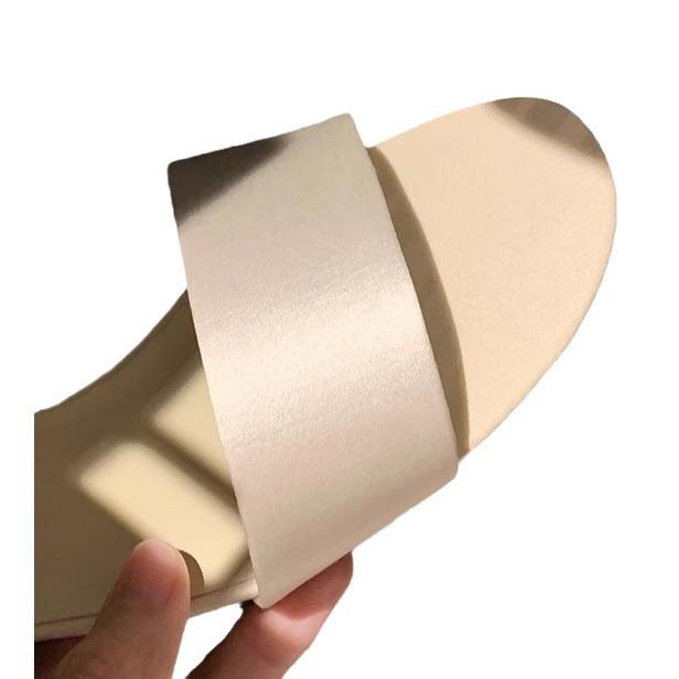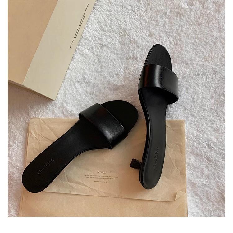 Виноградная мать того же стиля, минималистичный темперамент, шелковое слово с туфлями-котятами на высоком каблуке и кожаными крутыми шлепанцами, женский летний стиль