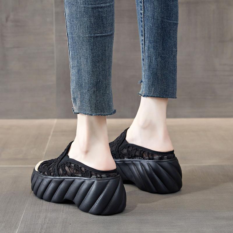 Баотоу шлепанцы женские уличные летние новые 2025 корейская версия универсальные в гонконгском стиле модные крутые шлепанцы женские с увеличением высоты полушлепанцы