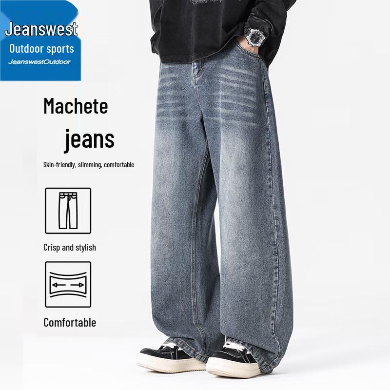 Jeanswest Men's Vintage Washed Loose Straight Jeans