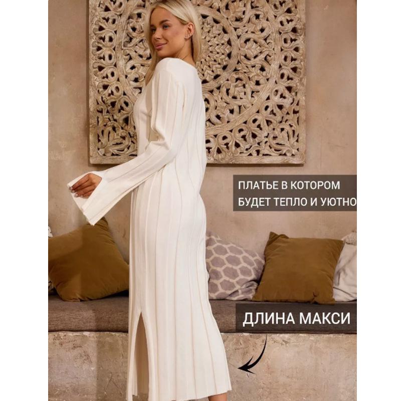 Европейское и американское облегающее вязаное шерстяное платье с длинным рукавом