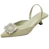 Французское бежевое слово со стразами с сандалиями женский тонкий каблук высокий каблук мода 2025 новый летний зарубежный мягкий обувь