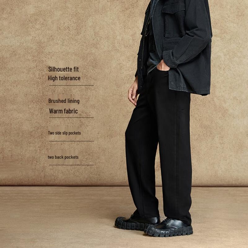 Мужские джинсы широкого кроя JACK&JONES однотонные с начесом
