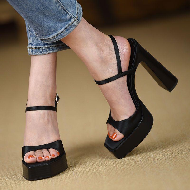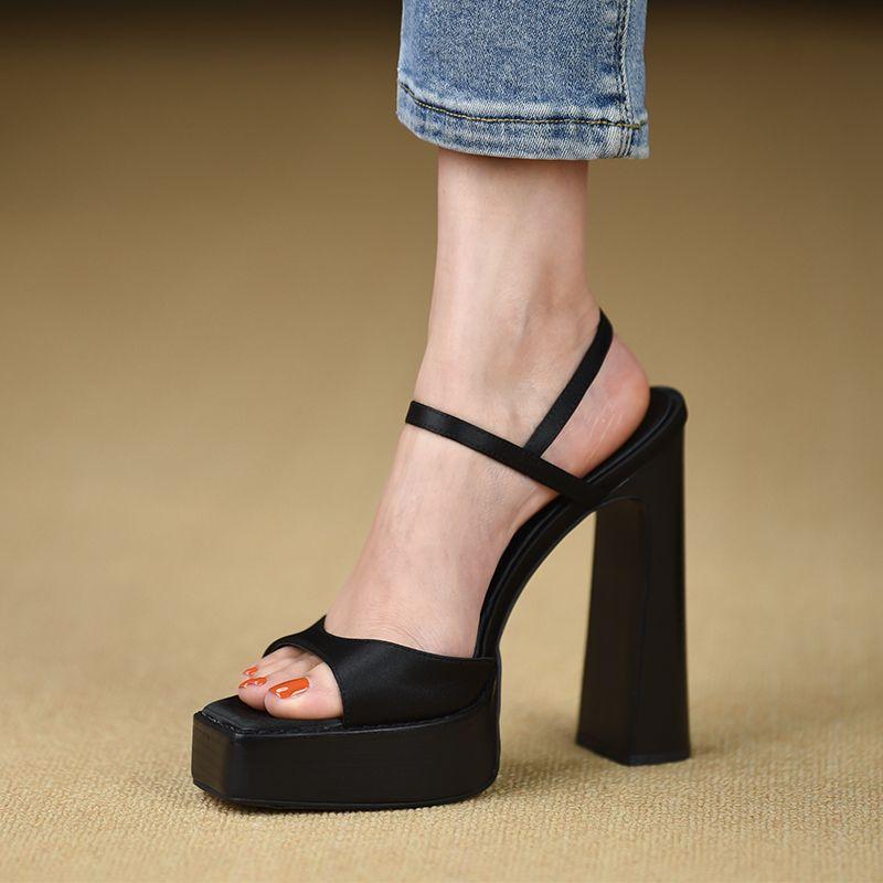 Сандалии на толстом каблуке с квадратным носком 2025 лето новый нишевый высокий каблук водонепроницаемая платформа с черной платформой женская обувь