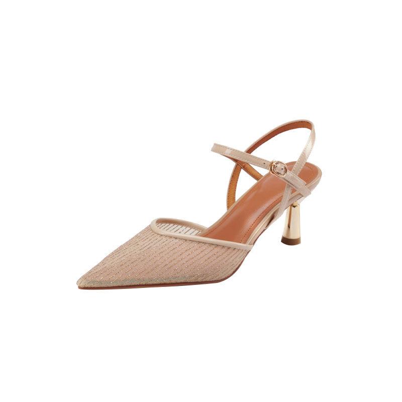 Сетчатые сандалии фея фея ветер сумка голова пустые нишевые туфли лето новый тонкий каблук пряжка на одном ремешке остроносые туфли на высоком каблуке