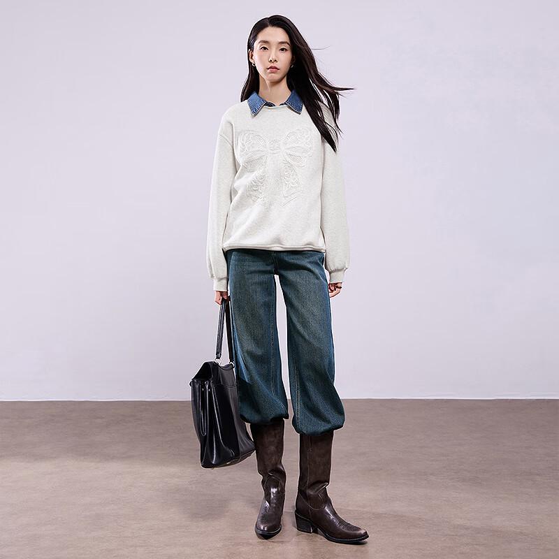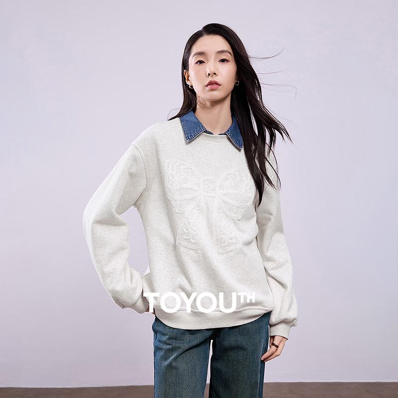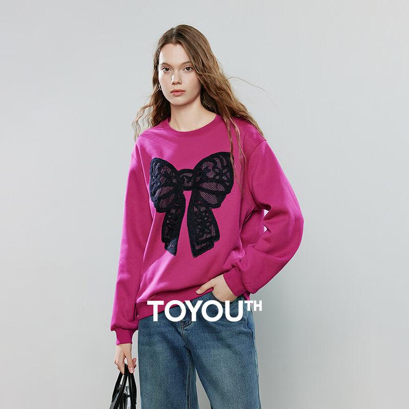 Женский свитшот свободного кроя на флисовой подкладке с кружевным бантом