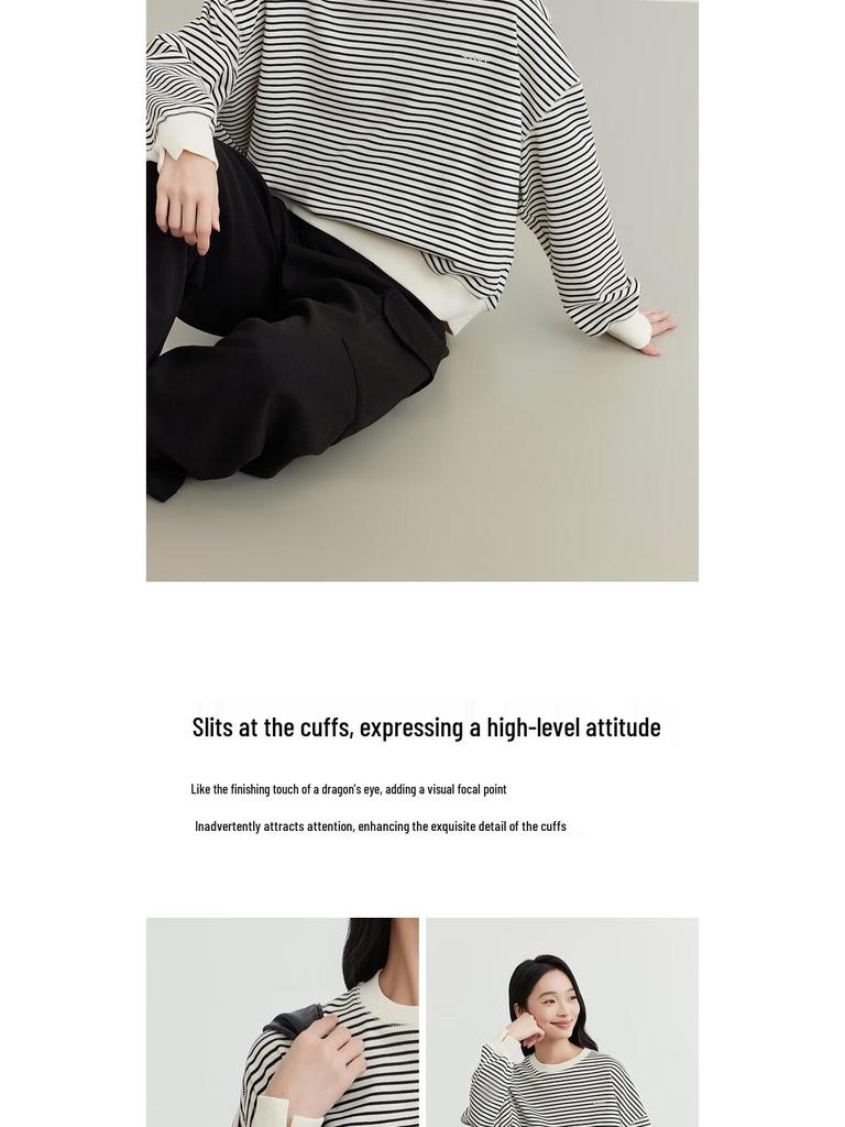 Elva' Island Women's Autumn/Winter Striped Drop Shoulder Crew Neck Loose Sweatshirt