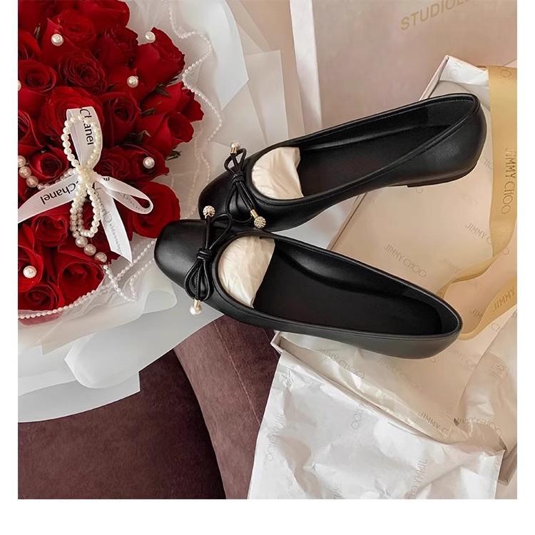 Вариант из овчины~ Изысканные серебряные балетки с жемчужным бантом, женские туфли Мэри Джейн на плоской подошве, кожаные легкие одинарные туфли
