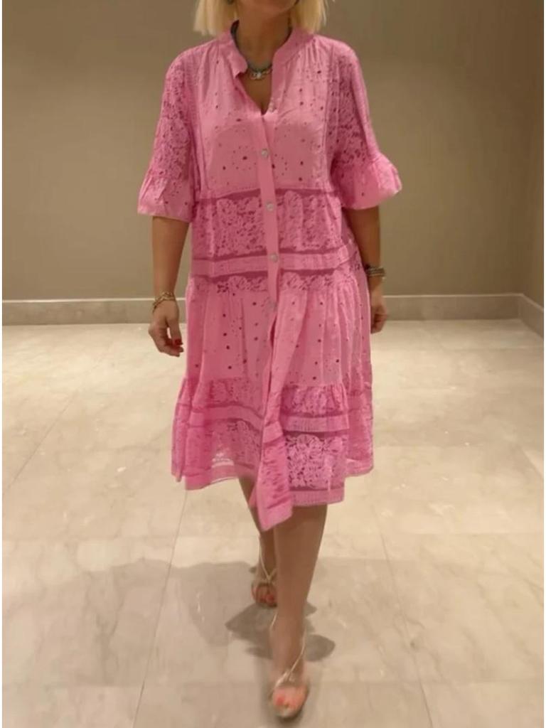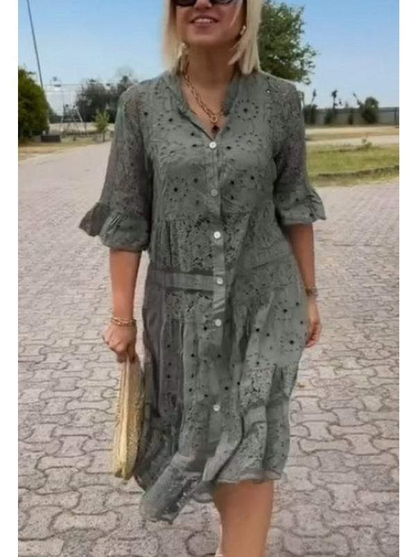 Окунитесь в непринужденную элегантность этого изысканного летнего платья, созданного для женщин, ценящих вневременной стиль.. Платье имеет однотонный дизайн, который излучает изысканность и универсальность, идеально подходящий для любого случая.. Подчеркнутое нежным кружевным V-образным вырезом, оно добавляет вашему образу нотку женственности и очарования.. Деталь сращивания пуговицами еще больше подчеркивает его изысканную эстетику. Это платье, изготовленное полностью из высококачественного полиэстера, обеспечивает комфорт и долговечность, что делает его незаменимым элементом вашего летнего гардероба.
