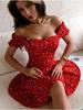 Европейское и американское летнее платье с цветочным принтом, пышными рукавами и квадратным вырезом, подчеркивающее талию