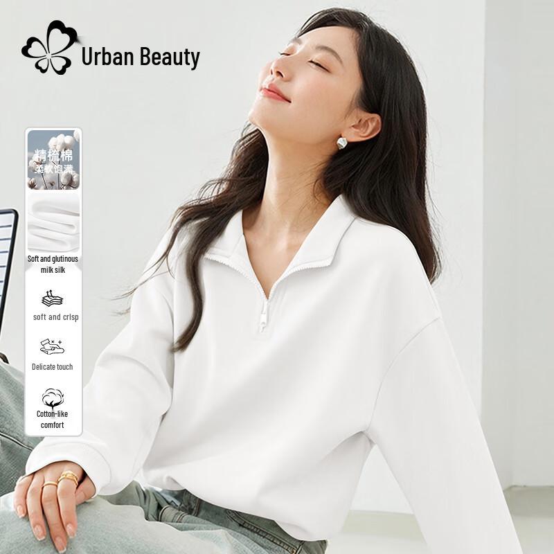 Женский короткий свитшот с поло-воротником на молнии до середины