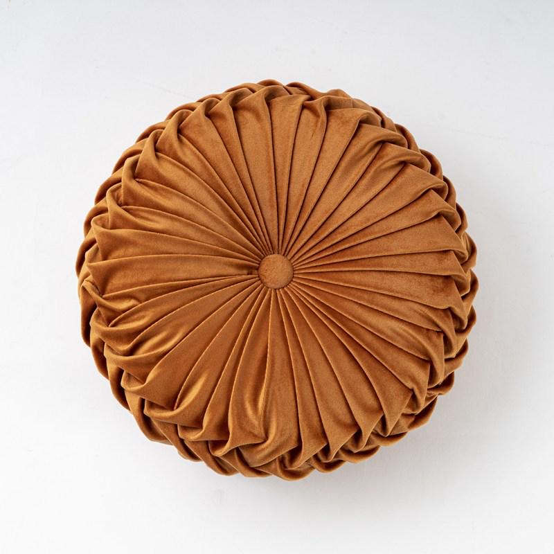 Бархатная подушка-валик в форме тыквы - Однотонная, ручной работы.