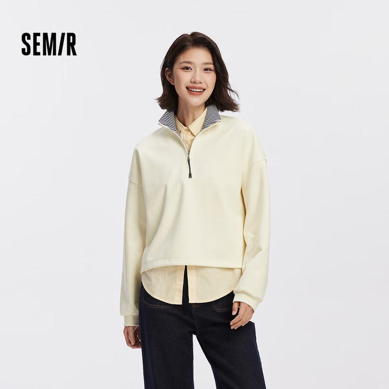 Semir Women's Oversize Plaid Stand Collar Drawstring Sweatshirt