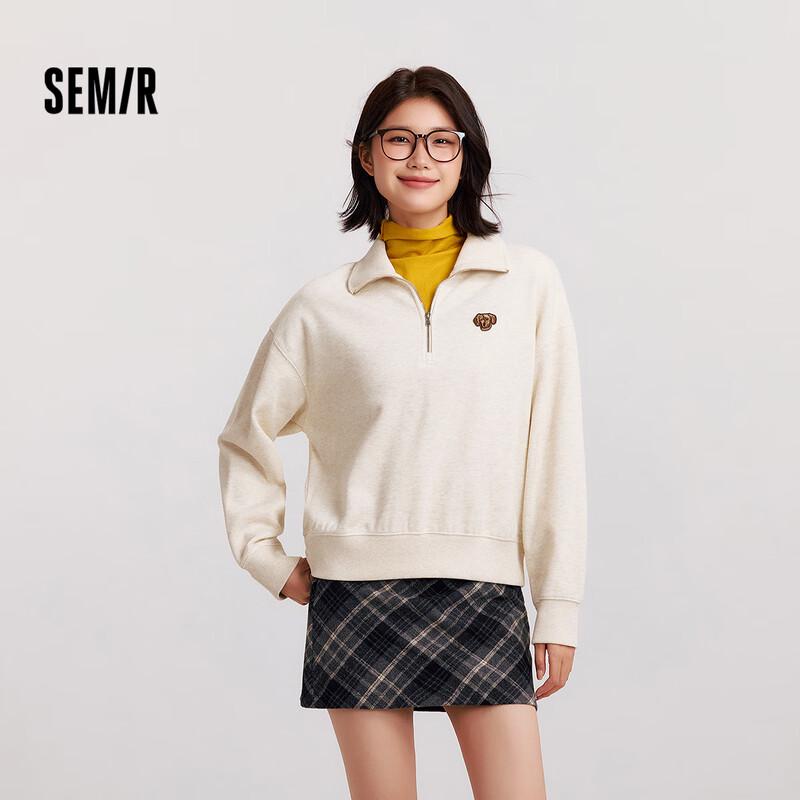 Semir Women's Oversized Striped Half-Zip Fleece Stand Collar Sweatshirt