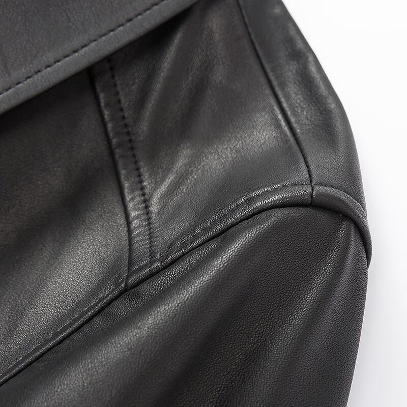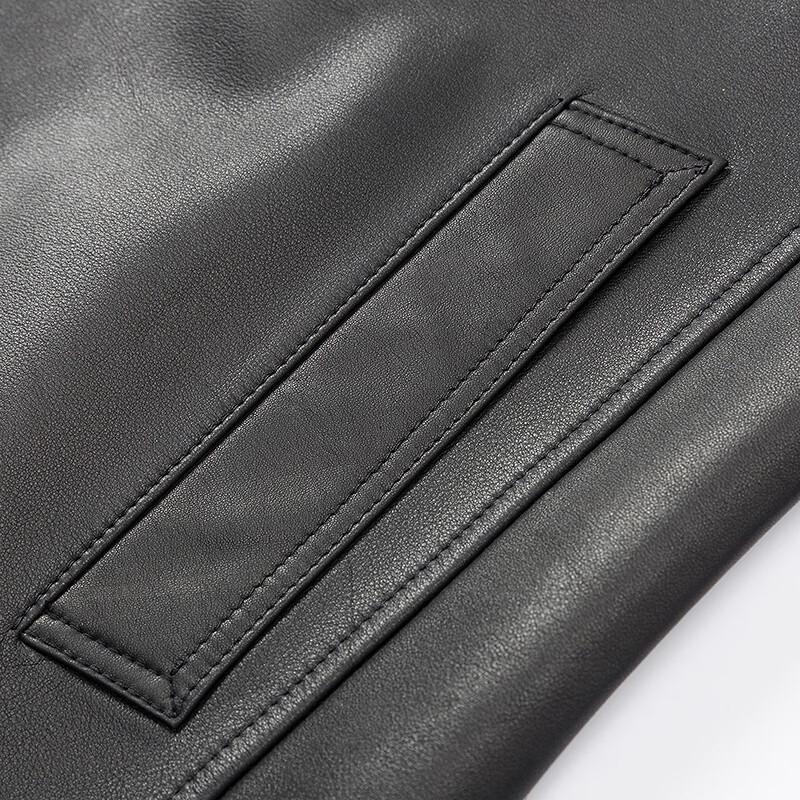 FAPAI Men's Classic Lapel Genuine Cowhide Leather Jacket