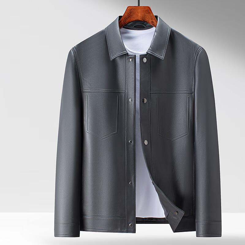 FAPAI Men's Genuine Sheepskin Turn-Down Collar Leather Jacket