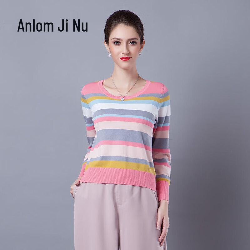 Anlom Women's Striped Long-Sleeve Crew Neck Knit Sweater, Style 1801008