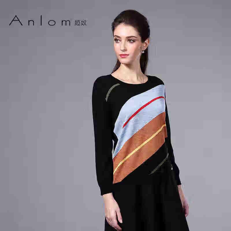 Женский полосатый пуловер с длинным рукавом и круглым вырезом