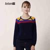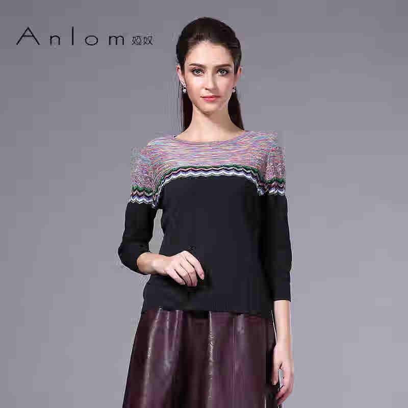 Женский вязаный топ Anlom с цветными блоками, полосатый, с круглым вырезом и рукавами семь восьмых