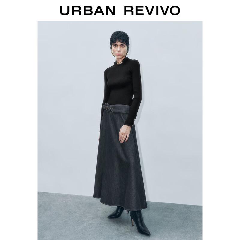 UR 2025 Зимний женский трикотажный топ с высоким воротником и нерегулярной металлической пряжкой