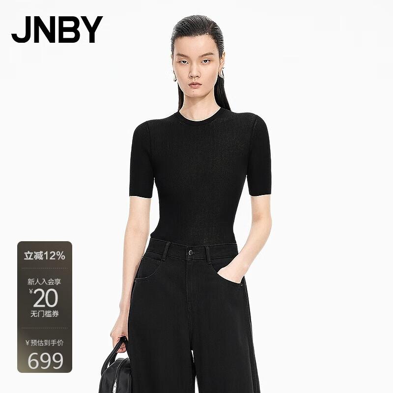 JNBY 2025 Autumn Slim-Fit Round Neck Short Sleeve Knit Top