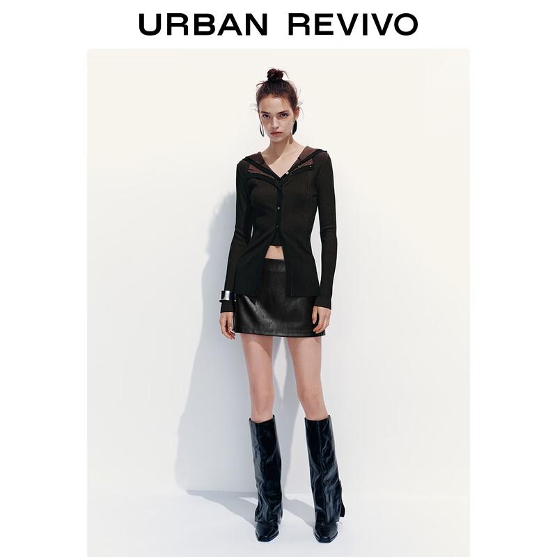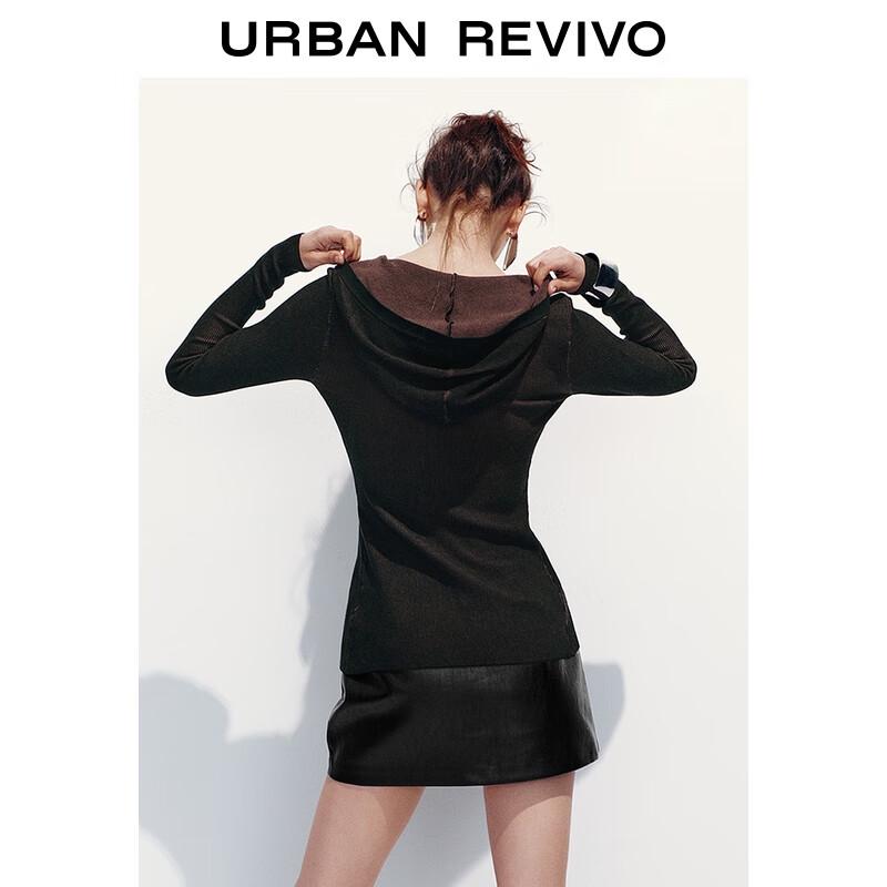 UR 2025 Осень Женский Модный Вязаный Свитер с Капюшоном, Имитация Двойки