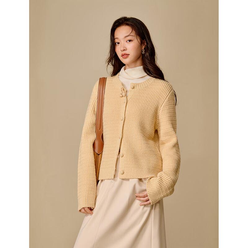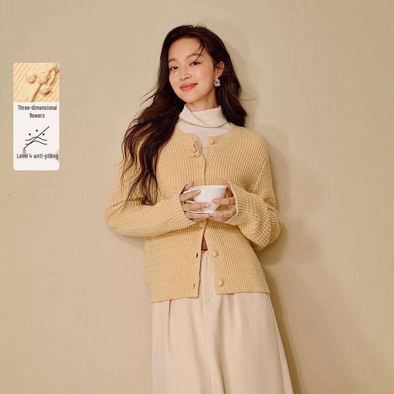 INMAN Женский короткий кардиган-свитер в рубчик с 3D-цветком