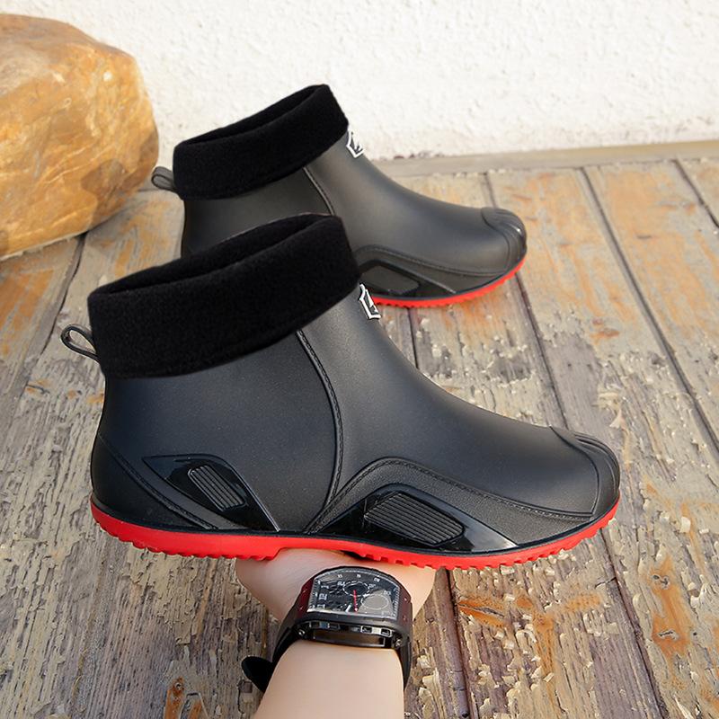 Мужские уличные модные водонепроницаемые и противоскользящие шерстяные резиновые ботинки с коротким голенищем