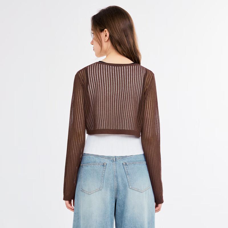 Ledin Sweet Style Hollow-Out Cropped Knit Cardigan
