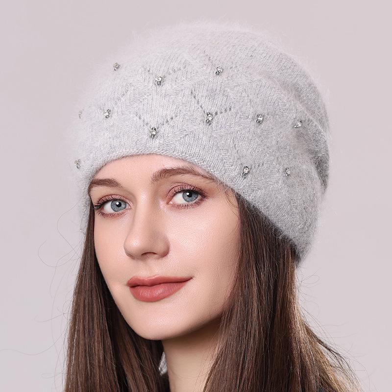 Шерстяная шапка с бриллиантами Женская осенне-зимняя флисовая шапка-шарф Вязаная шапка-пуловер