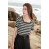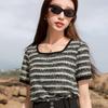 Женский трикотажный топ Sancai на лето 2025 с ажурной вязкой крючком, в полоску, с квадратным вырезом и коротким рукавом