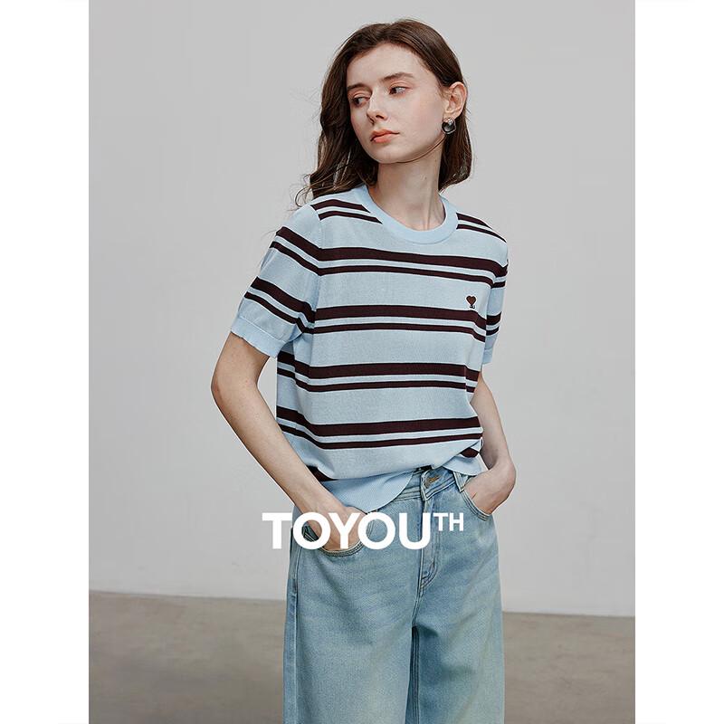 Женский летний топ Chuyu 2025 года из ледяной пряжи в полоску с вышивкой