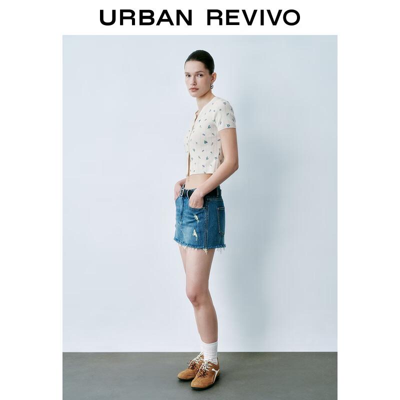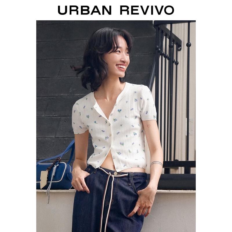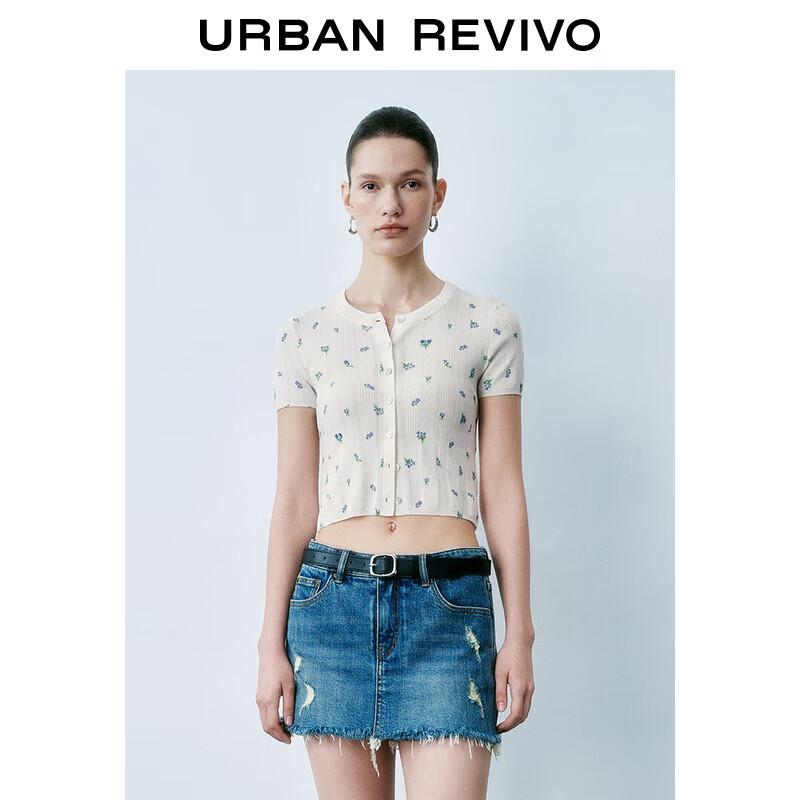 UR 2025 Summer Contrast Floral Short Sleeve Knit Cardigan