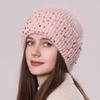 Вязаная шапка из кроличьего меха с пайетками, зимняя теплая шерстяная шапка, модная женская шапка-пуловер для защиты ушей