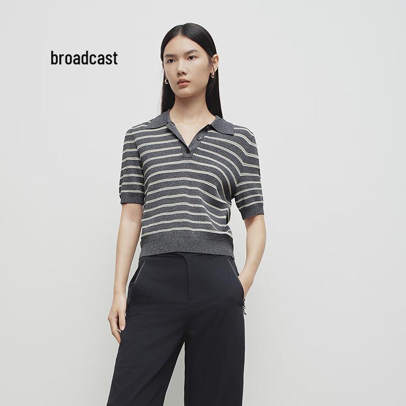Women's Academic Style Striped Polo Knit Top