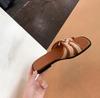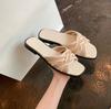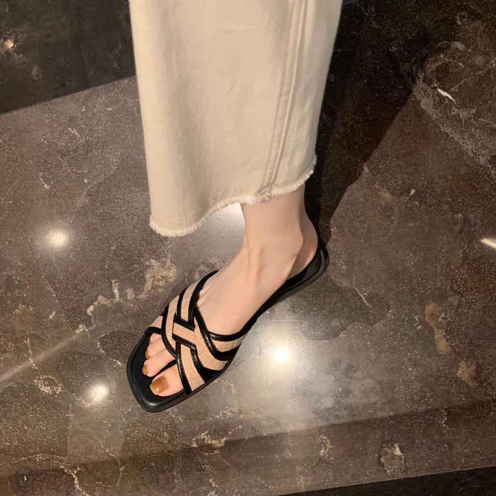 Sheepskin version~ square-headed straw-woven cross-toed slippers women's Korea 2025 summer irregular casual cool slippers