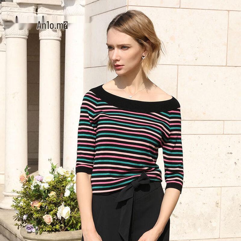 Anlom Женский повседневный полосатый трикотажный пуловер с рукавом 3/4