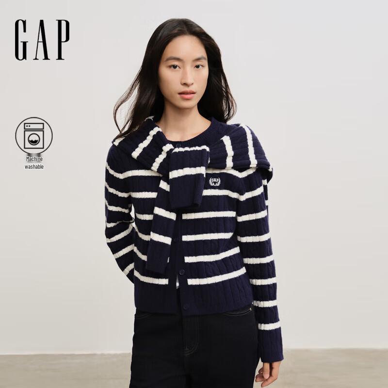 Женский кардиган Gap 2025 Зима Логотип Вышивка Пшеничный Полосатый Вязаный