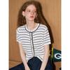 Sancai 2025 Осень Полосатый Пуловер с Коротким Рукавом Вязаный Жгутом