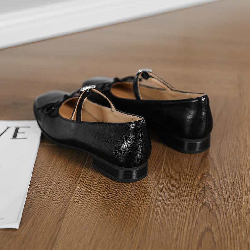 French Mary Jane single shoes women's spring and summer new square head bow ballet shoes light mouth small thick heel flat shoes soft sole